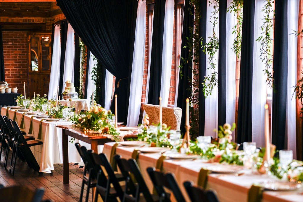 Originally built in 1917 as the Liberty Tobacco Warehouse and fully renovated in 2012, the space blends historic charm with modern elegance. Its industrial-elegant atmosphere is highlighted by century-old exposed wooden beams, weathered pine floors, distressed brick walls, and original wood-framed windows. Coley Hall features a 5,200-square-foot banquet hall accommodating up to 250 guests and the East Main Courtyard for up to 125 guests, providing versatile, customizable spaces ideal for weddings, receptions, rehearsal dinners, banquets, and more.